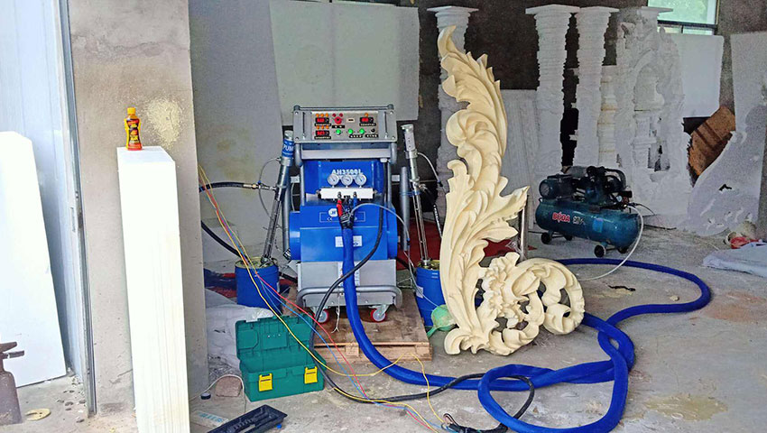 在雕塑行业我们称泡沫雕塑硬化的过程叫做为雕刻成型的泡沫雕塑进行PU蒙皮处理。所谓聚脲涂料泡沫雕塑硬化蒙皮就是在泡沫表面喷涂上一层保护膜,能够起到增强泡沫表面强度和韧性并且能有效隔绝油漆、原子灰、树脂这些化学品对泡沫的腐蚀。